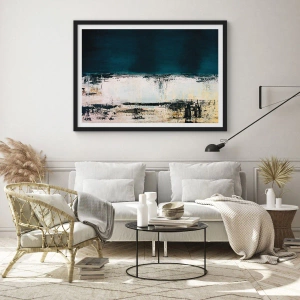 Pôster com moldura preta - Composição abstrata em tons de azul marinho e bege - 50x70cm - Composição horizontal - Decoração de parede moderna para a sala de estar e quarto ARTTOR