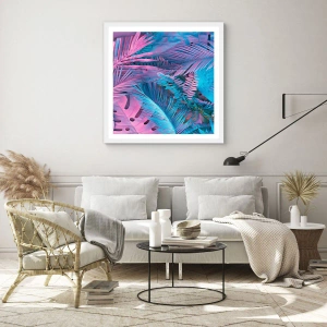Pôster em moldura branca - Trópicos em rosa e azul - 40x50 cm
