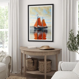 - Este pôster retrata veleiros com velas vermelhas em águas calmas. A bela paisagem exala harmonia e elegância, tornando-se uma decoração de interiores ideal.