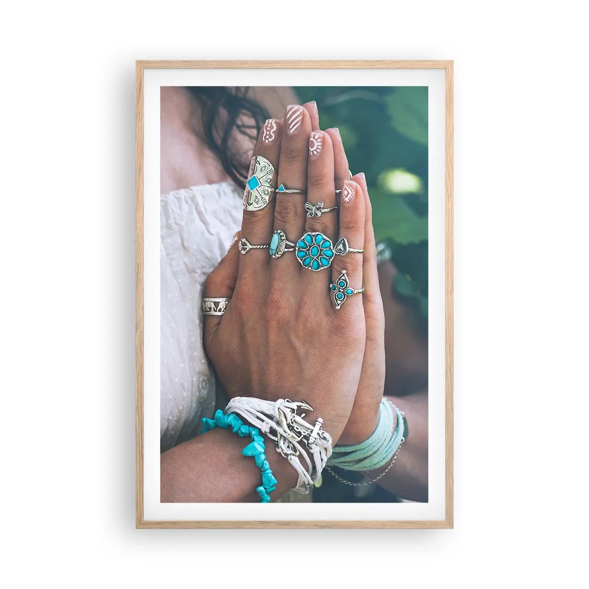 Pôster com moldura de carvalho claro - Bem-vindo ao centro do ser - 61x91 cm