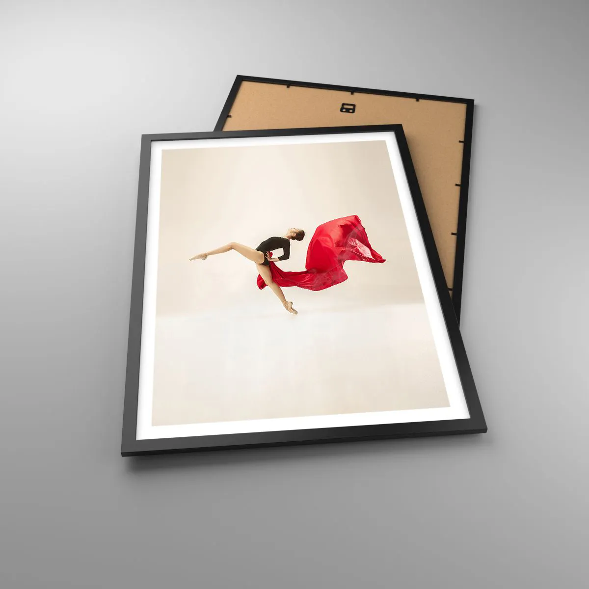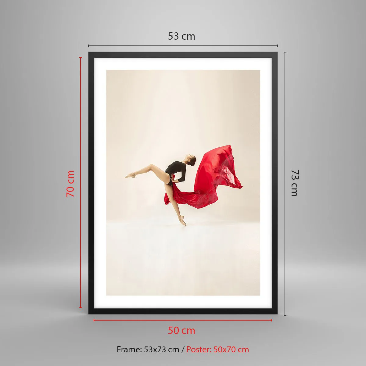 Pôster com moldura preta - Uma dançarina em uma roupa preta com tecido vermelho em movimento - 50x70cm - Vermelho e preto - Decoração de parede moderna para a sala de estar e quarto ARTTOR