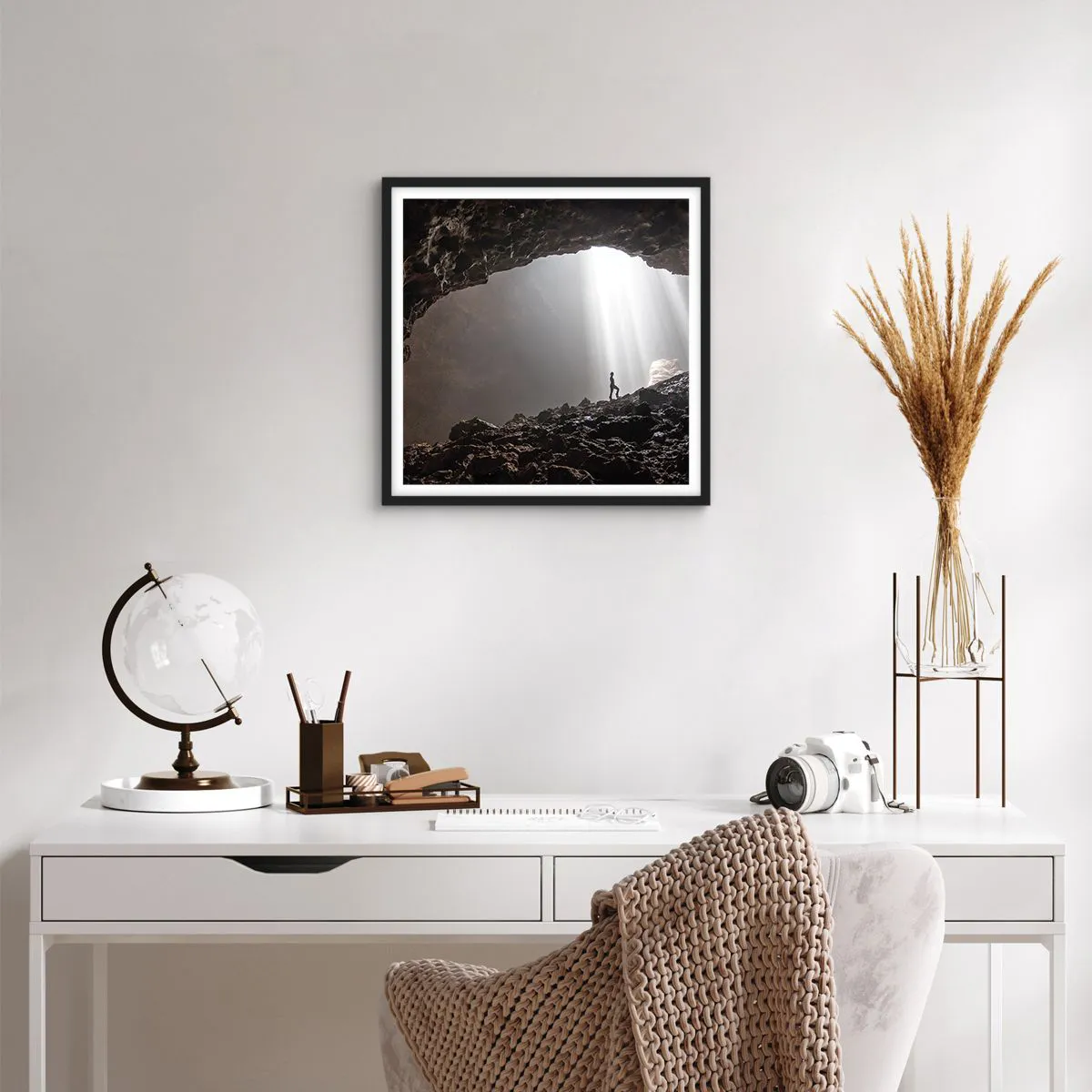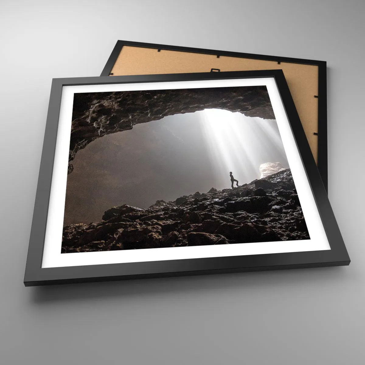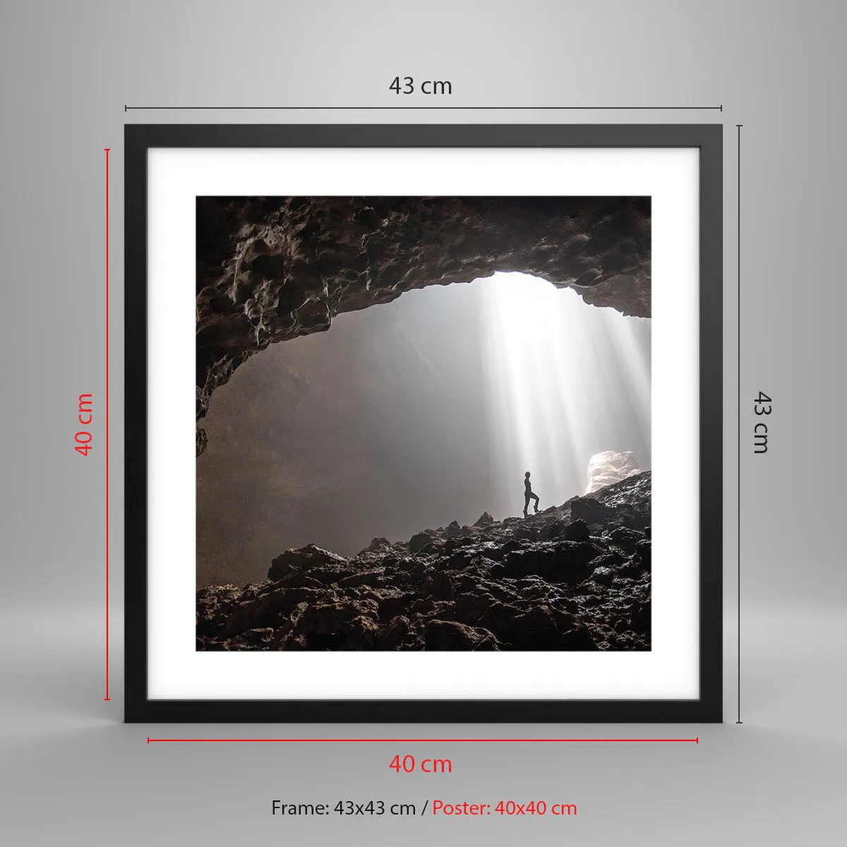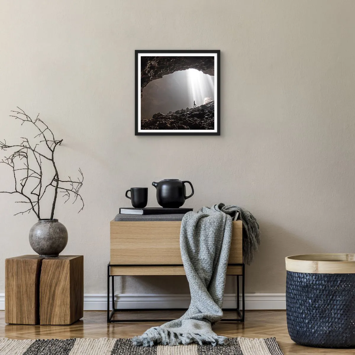 Pôster com moldura preta - Gruta luminosa - 40x40 cm