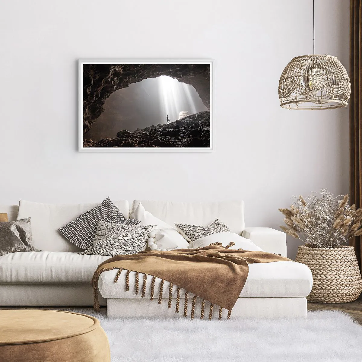 Pôster em moldura branca - Gruta luminosa - 91x61 cm