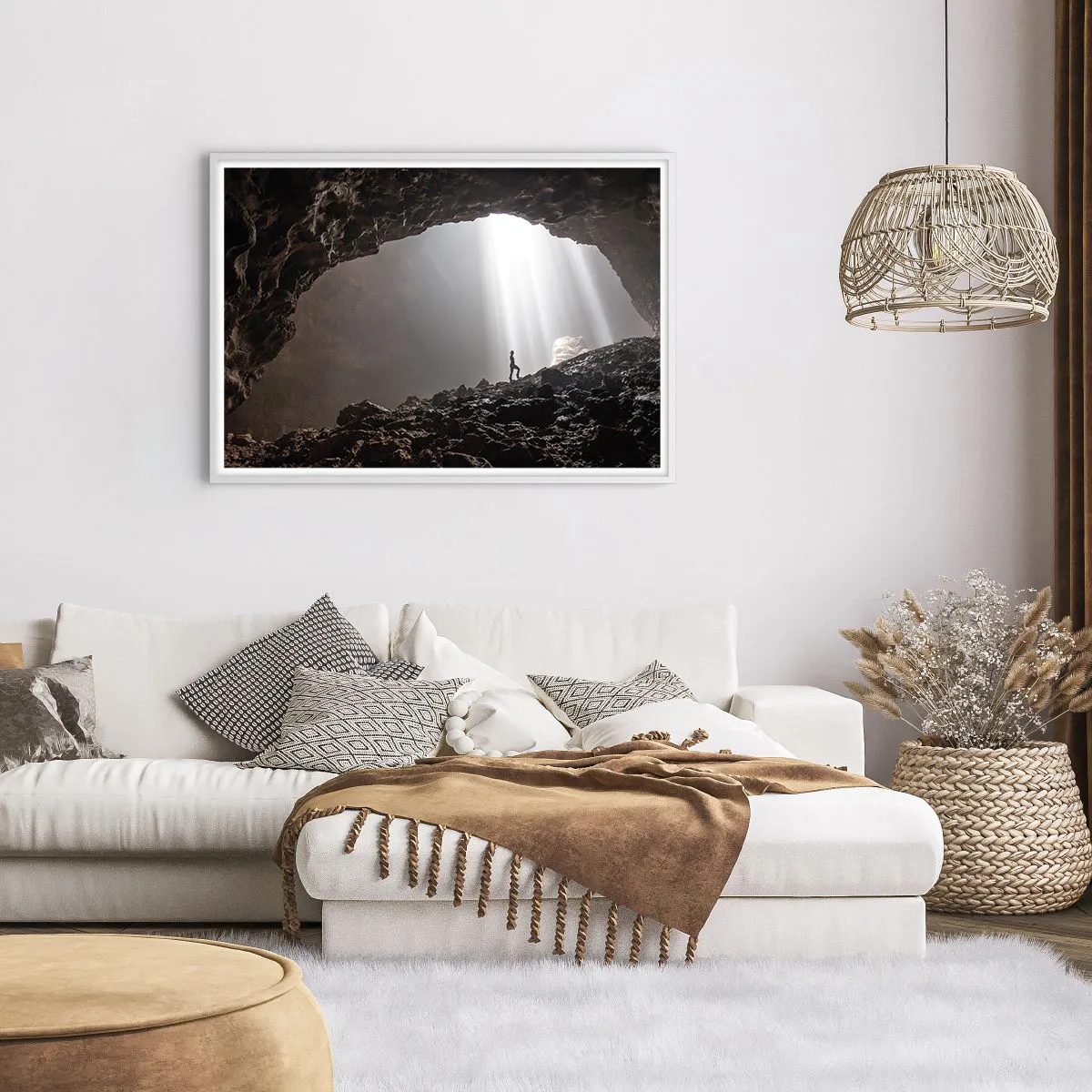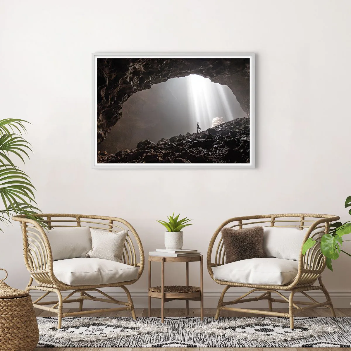 Pôster em moldura branca - Gruta luminosa - 100x70 cm