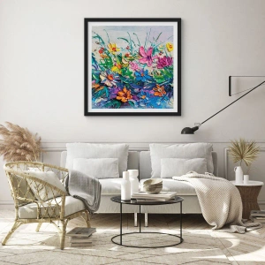 Pôster com moldura preta - Uma composição floral pintada com textura espessa e cores vivas - 50x70cm - Não é de todo natureza morta - Decoração de parede moderna para a sala de estar e quarto ARTTOR