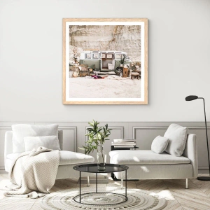 Pôster com moldura de carvalho claro - É hora de começar a jornada - 40x40 cm