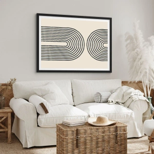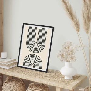 Pôster com moldura preta - Um padrão abstrato com linhas formando arcos simétricos em um estilo minimalista. - 50x70cm - Em um momento... - Decoração de parede moderna para a sala de estar e quarto ARTTOR