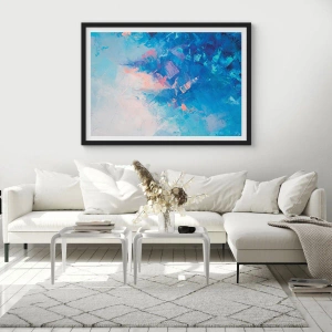 Pôster com moldura preta - Uma composição abstrata em tons de azul e rosa inspirada em uma paisagem de inverno. - 50x70cm - Abstração de inverno - Decoração de parede moderna para a sala de estar e quarto ARTTOR