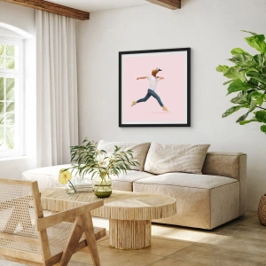 Pôster com moldura preta - Uma figura correndo com uma cabeça de pássaro em um fundo rosa - 50x70cm - Uma pitada de absurdo - Decoração de parede moderna para a sala de estar e quarto ARTTOR