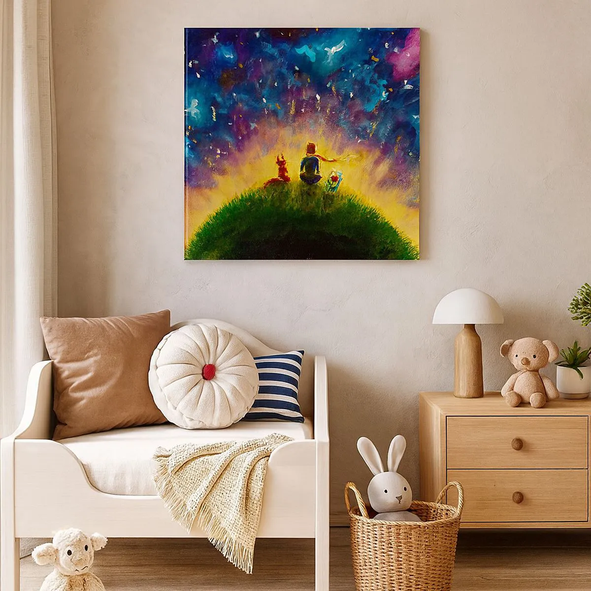A tela usada em nossas pinturas é um tecido impermeável de alta qualidade com gramatura de 240 g/m2. É dedicado a plotters profissionais que permitem a produção de impressões ecológicas. Utilizamos tintas ecológicas, inodoras e duráveis, com profunda saturação de cores