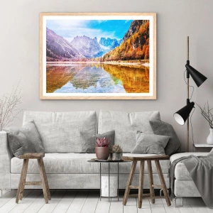 Pôster com moldura de carvalho claro - E nas montanhas é outono - 91x61 cm