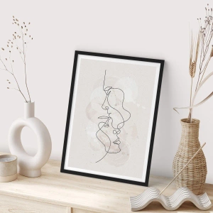 - Um gráfico minimalista que representa rostos entrelaçados em uma única linha. Uma escolha perfeita para interiores escandinavos e modernos.