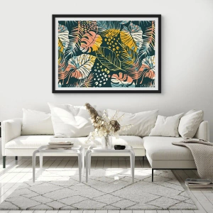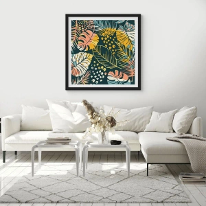 Pôster com moldura preta - Fantasia de folhas - 60x60 cm