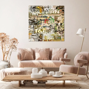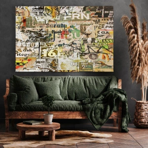 Quadro em tela - Uma colagem de fragmentos de jornais e cartazes em estilo artístico. - 70x50cm - O caos - Decoração de parede moderna para a sala de estar e quarto ARTTOR
