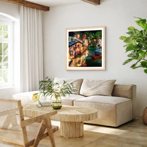 Pôster com moldura de carvalho claro - Uma noite em uma rua chinesa - 50x70 cm