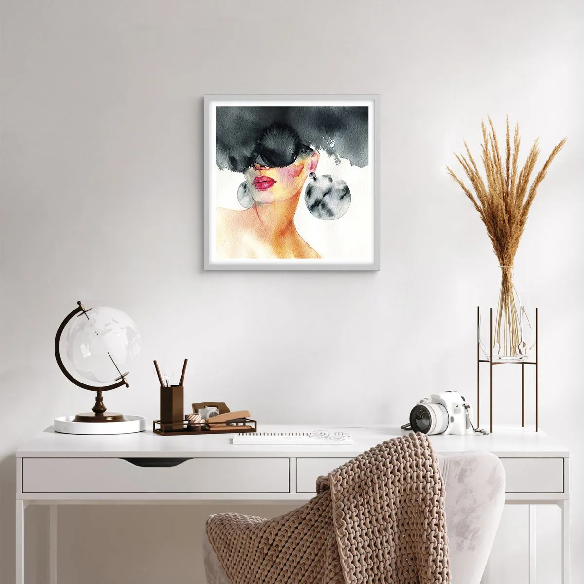 • Rosto de Mulher, Mulher, Chapéu, Pessoas, Moda, Pastel, Arte, Para a sala de jantar, Para o hall, Para a sala de estar, Para o quarto, , Branco, Marrom, Preto, Cinza, Quadrado