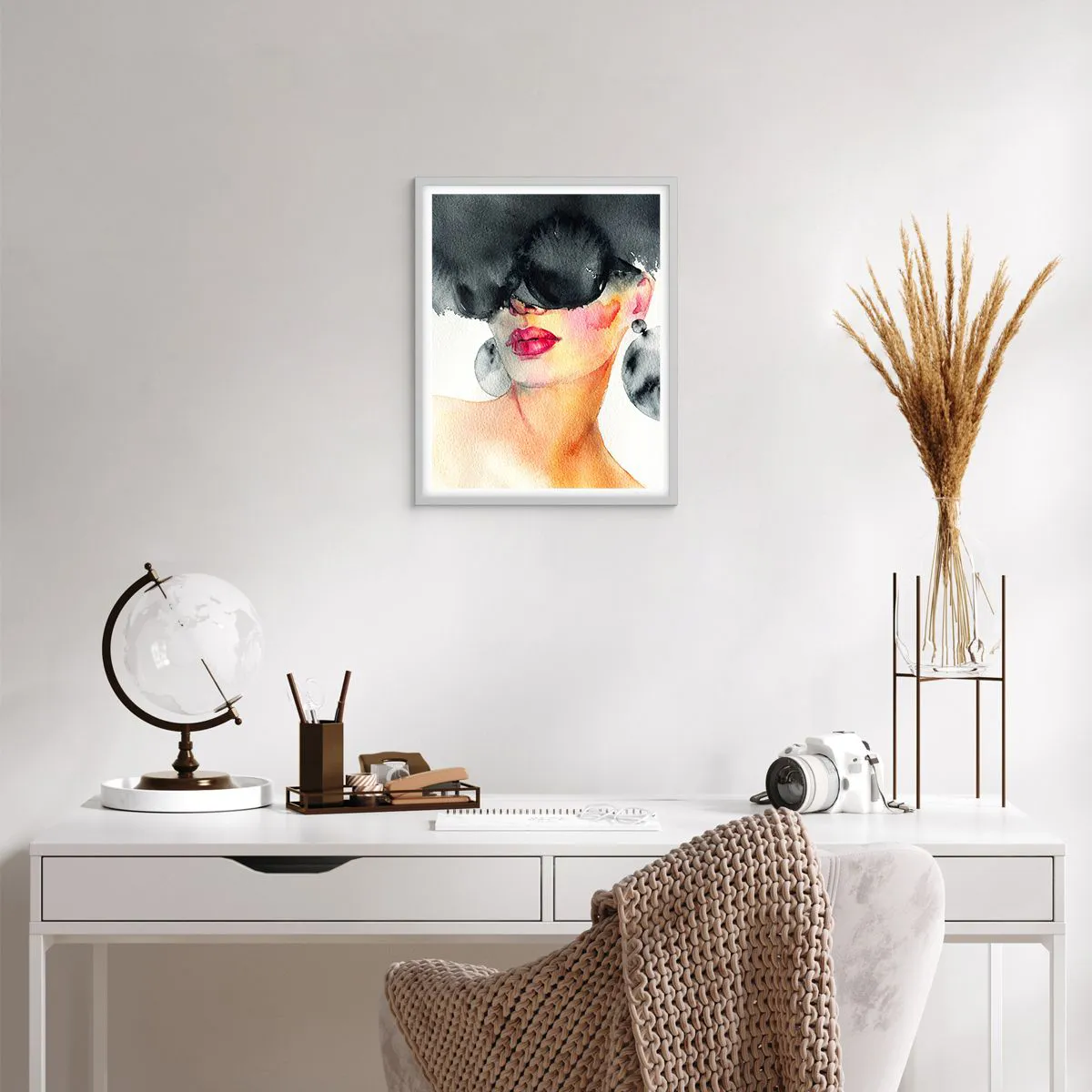 • Rosto de Mulher, Mulher, Chapéu, Pessoas, Moda, Pastel, Arte, Para a sala de jantar, Para o hall, Para a sala de estar, Para o quarto, , Branco, Marrom, Preto, Cinza, Vertical