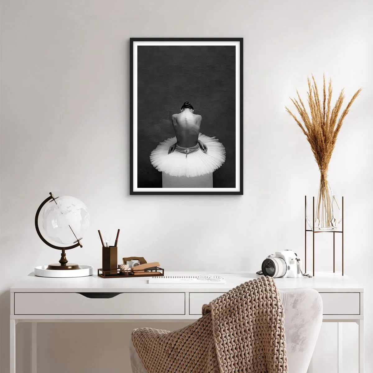 - Este pôster apresenta um retrato em preto e branco de uma bailarina sentada em uma plataforma. Sua estética minimalista, elegância e harmonia criam uma decoração única, perfeita para os amantes da arte e da dança.
