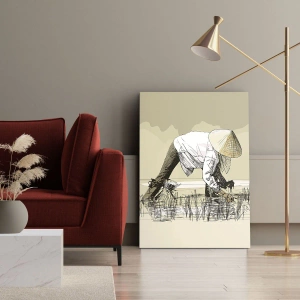 A tela é esticada na moldura. Os lados e bordas são impressos para criar uma continuação da imagem. O quadro está pronto para ser pendurado na parede. Cada produto tem um gancho ligado à moldura e um conjunto de montagem (parafuso + cavilha).