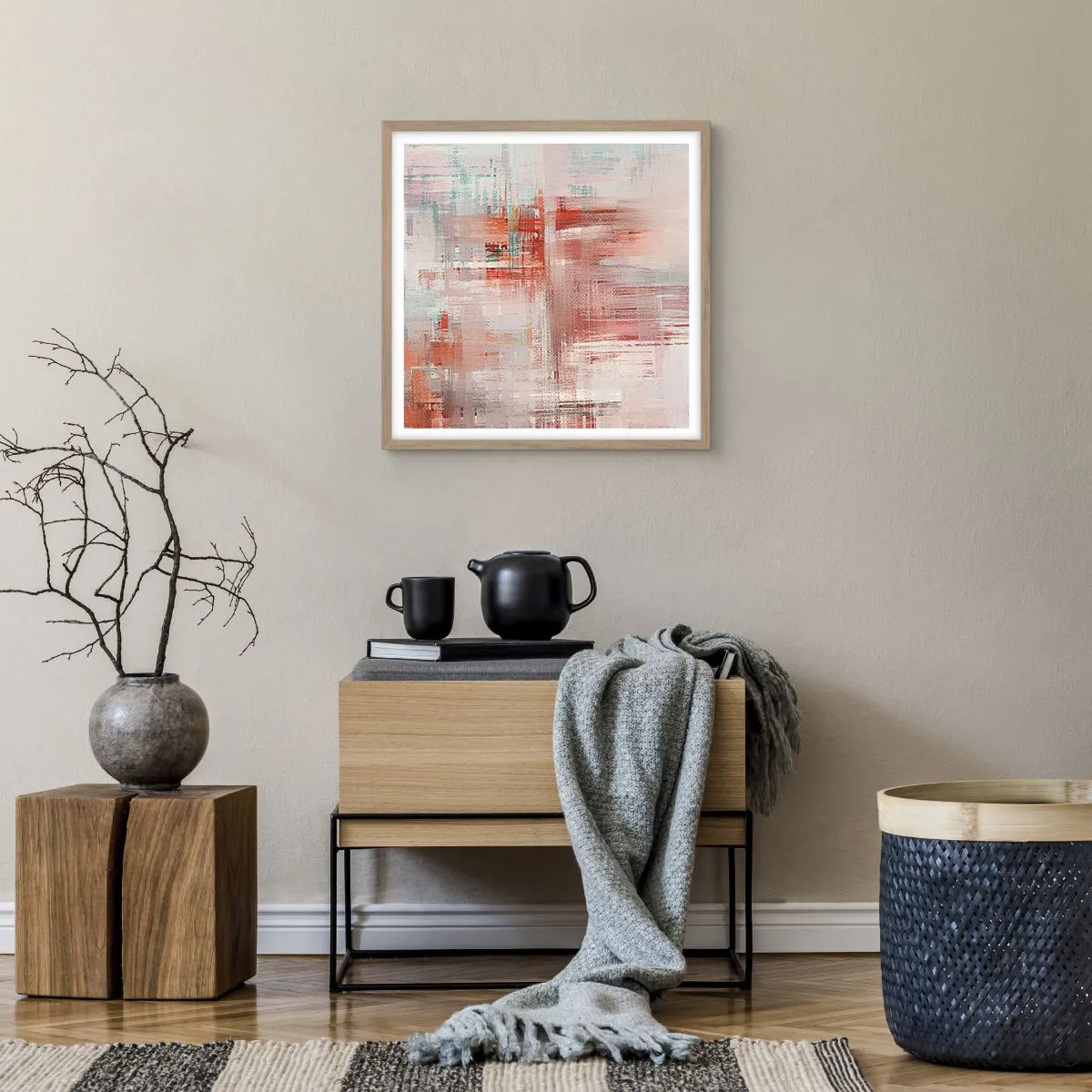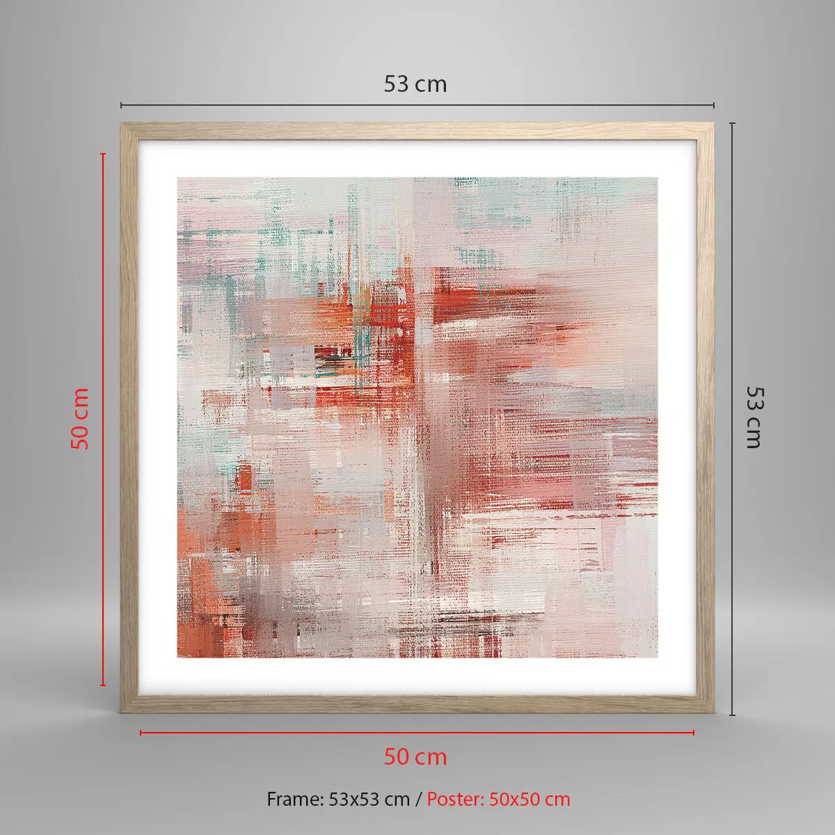 Pôster com moldura de carvalho claro - Nebuloso. Mas rosa - 50x50 cm