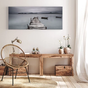 A tela é esticada na moldura. Os lados e bordas são impressos para criar uma continuação da imagem. O quadro está pronto para ser pendurado na parede. Cada produto tem um gancho ligado à moldura e um conjunto de montagem (parafuso + cavilha).