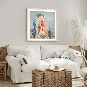 Pôster com moldura de carvalho claro - Mulher – flor - 91x61 cm