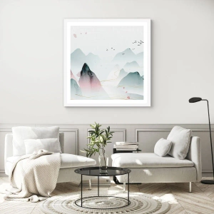 Pôster em moldura branca - Acima dos picos - 70x50 cm