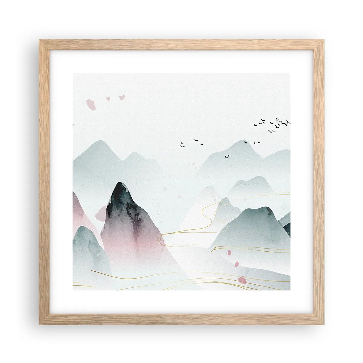 Pôster com moldura de carvalho claro - Acima dos picos - 40x40 cm