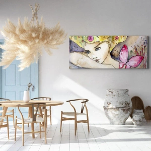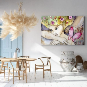 Quadro em tela - Uma mulher com um penteado abstrato e uma borboleta rosa - 70x50cm - Princesa borboleta - Decoração de parede moderna para a sala de estar e quarto ARTTOR
