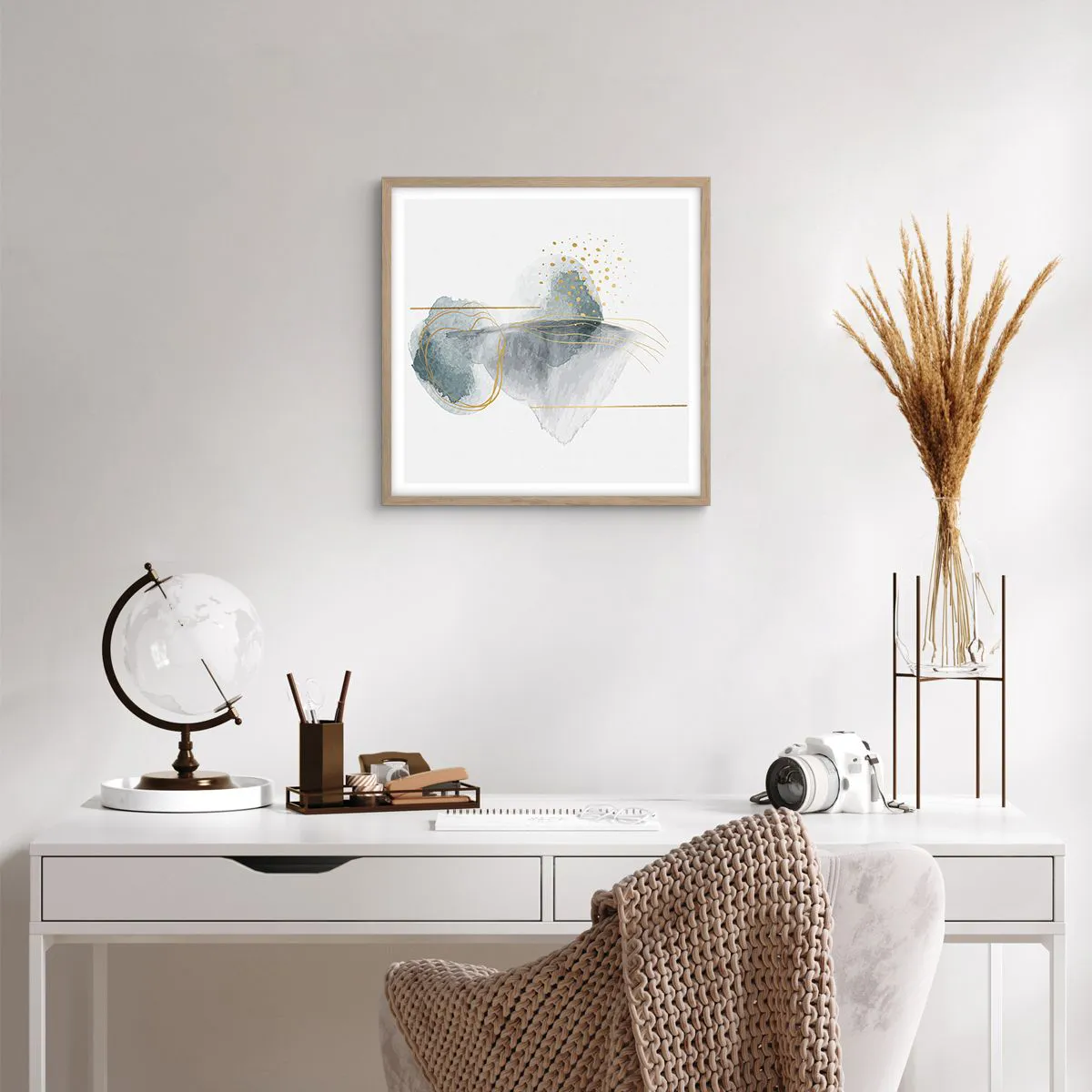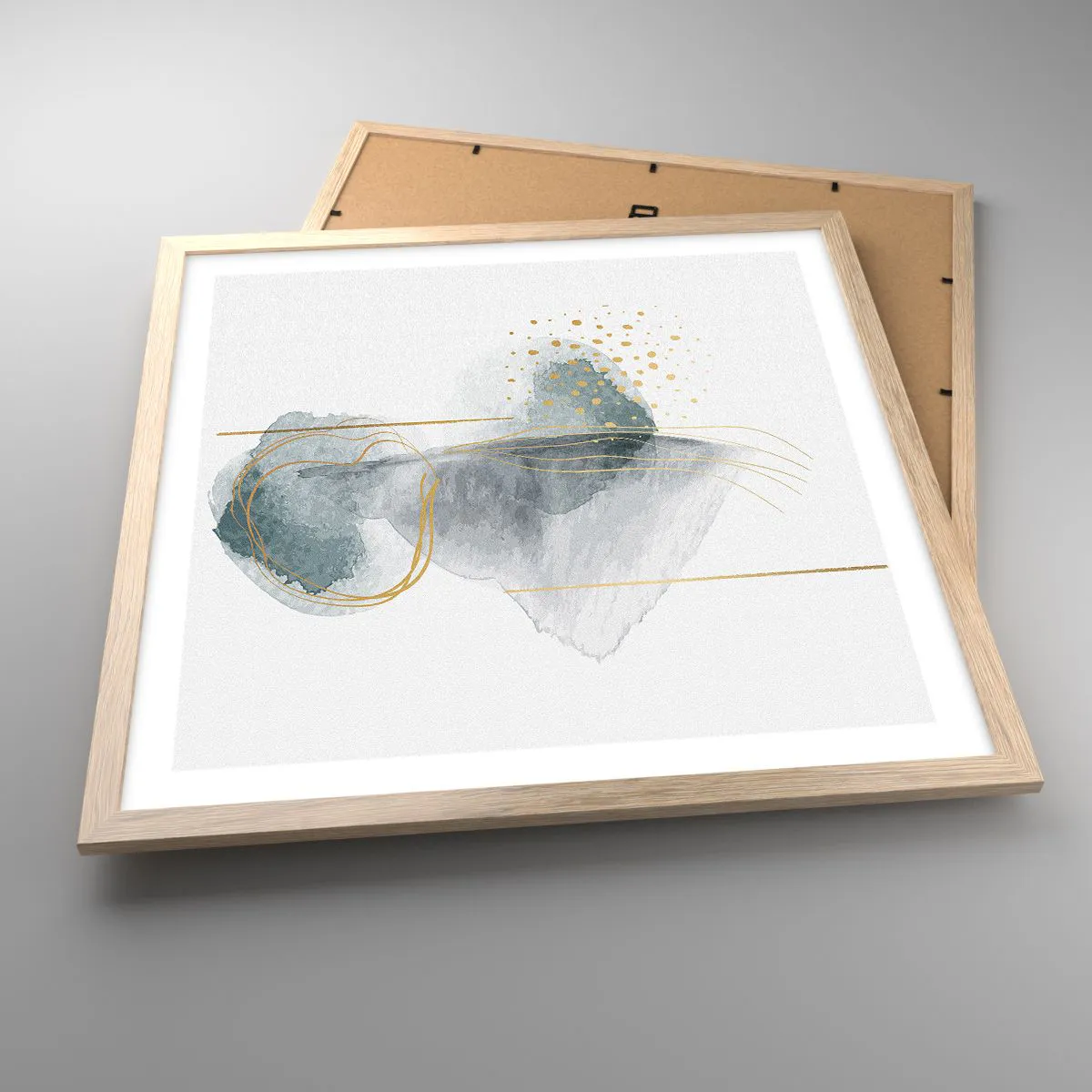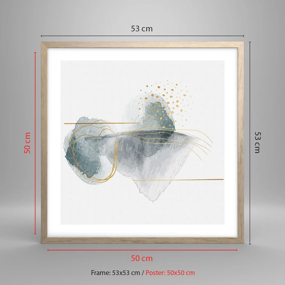 Pôster com moldura de carvalho claro - Sobre a relação entre o cinza e o dourado - 50x50 cm