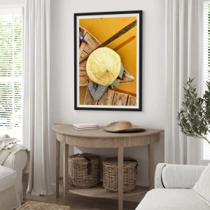 - O pôster retrata um chapéu tradicional contra um fundo de um barco de madeira e água amarelada, criando uma composição única que evoca a tradição asiática. Perfeito para sala de estar, quarto ou escritório. A moldura preta realça a elegância da imagem.