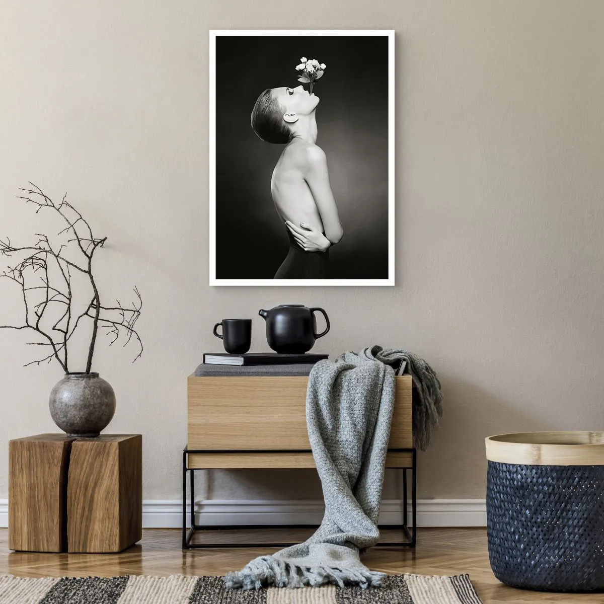• Corpo, Flores, Modelo, Preto e branco, Pessoas, Moda, Para o hall, Para a sala, Para o quarto, Preto, cinza, preto e branco, Vertical