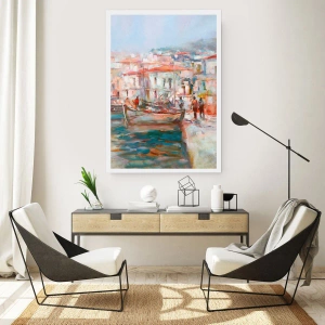 • Cidade Portuária, Arquitetura, Łódź Rybacka, Arquitetura, Paisagens, Náutico, Pastel, Paisagens, Arte, Para o escritório, Para o escritório, Para a sala de jantar, Para o hall, Para a sala de estar, Para o quarto, Branco, Azul, Laranja, Cinza, Quadrado