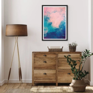 • Este pôster apresenta uma composição abstrata em tons de azul e rosa, criando um design elegante e moderno. Perfeito para sala de estar, escritório ou quarto. A moldura preta realça a estética da imagem.