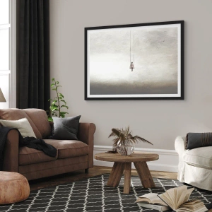 Pôster com moldura preta - Uma figura em um balanço suspensa no espaço - 50x70cm - A criança em nós - Decoração de parede moderna para a sala de estar e quarto ARTTOR