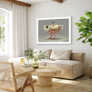 Pôster em moldura branca - O cavaleiro Peixoso - 61x91 cm