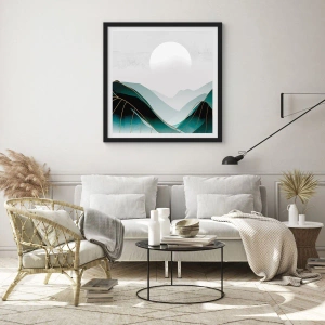 Pôster com moldura preta - Montanhas abstratas em tons de verde com delicado dourado - 50x70cm - Em plena majestade - Decoração de parede moderna para a sala de estar e quarto ARTTOR