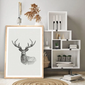 Pôster com moldura de carvalho claro - Veado em estilo cubista - 50x40 cm