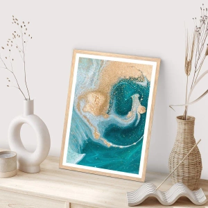 Pôster com moldura de carvalho claro - Um vórtice de ouro e turquesa - 40x40 cm