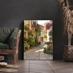 A tela é esticada na moldura. Os lados e bordas são impressos para criar uma continuação da imagem. O quadro está pronto para ser pendurado na parede. Cada produto tem um gancho ligado à moldura e um conjunto de montagem (parafuso + cavilha).