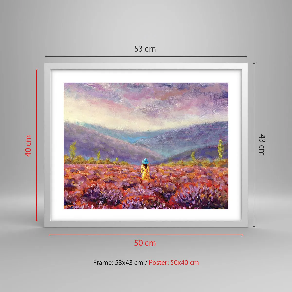 Pôster em moldura branca - No mundo da lavanda - 50x40 cm
