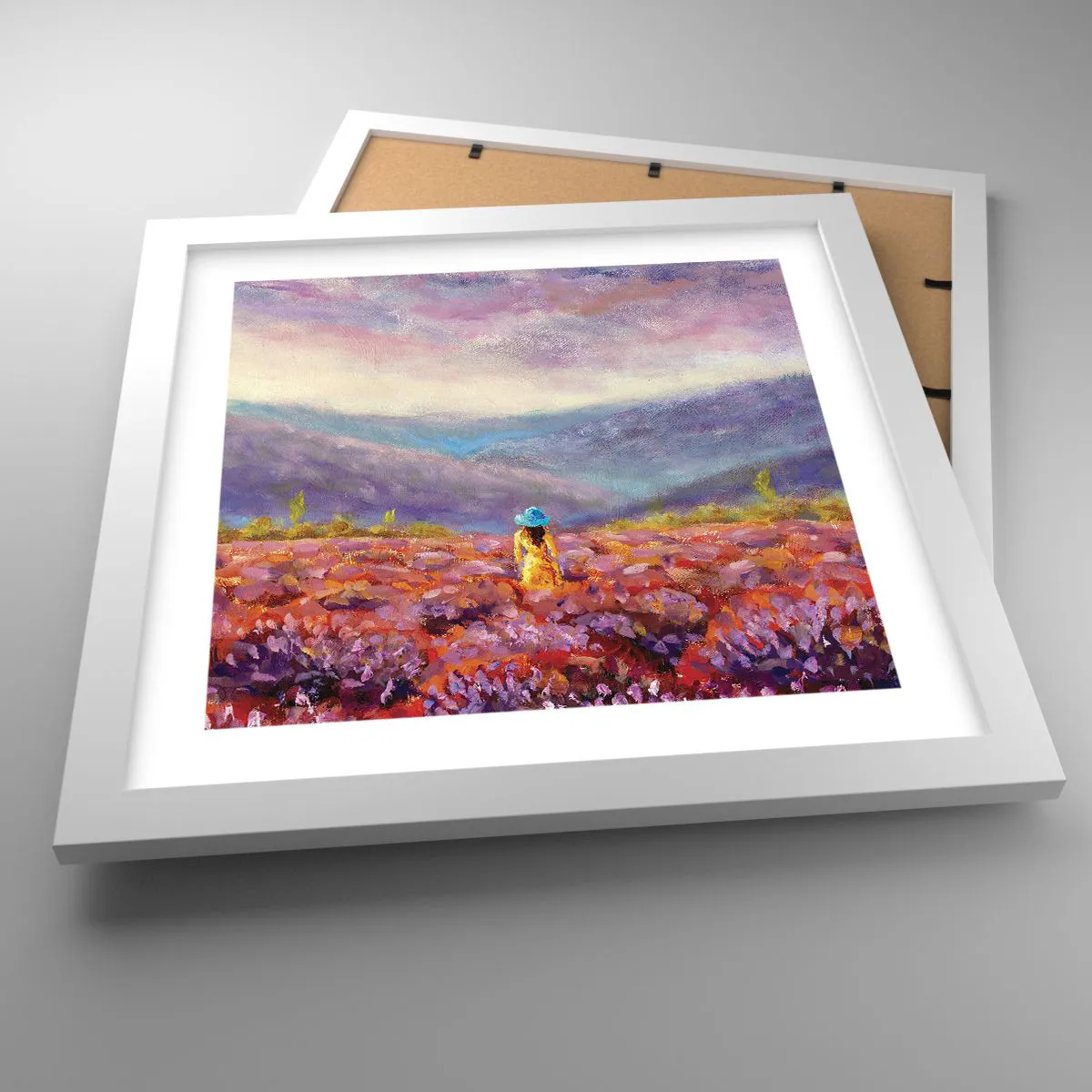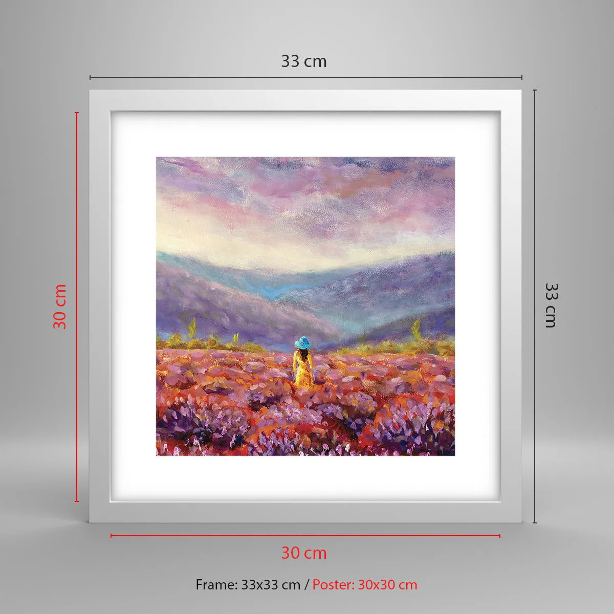 Pôster em moldura branca - No mundo da lavanda - 30x30 cm