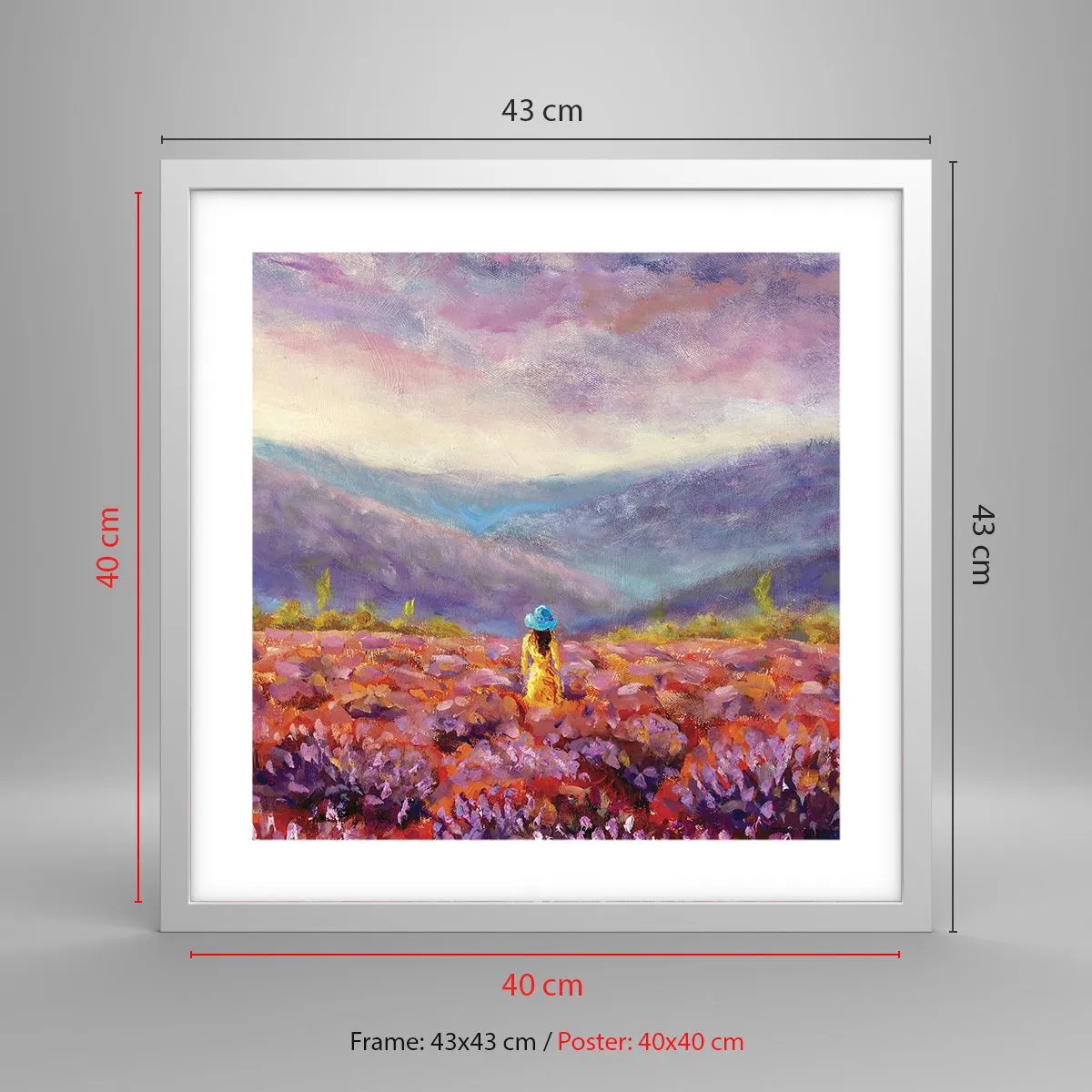 Pôster em moldura branca - No mundo da lavanda - 40x40 cm