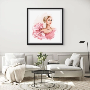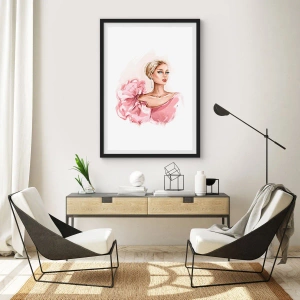 Pôster com moldura preta - Mulher elegante em um vestido rosa - 50x70cm - Parece pintada... - Decoração de parede moderna para a sala de estar e quarto ARTTOR