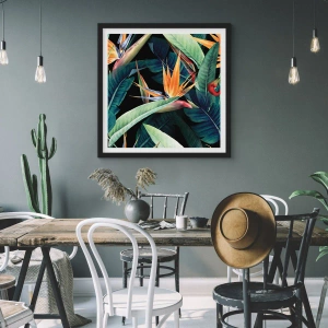 Pôster com moldura preta - Flores ardentes dos trópicos - 100x70 cm