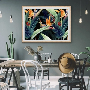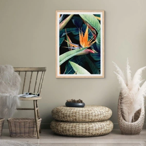 Pôster com moldura de carvalho claro - Flores ardentes dos trópicos - 40x40 cm