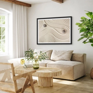 Pôster com moldura preta - Uma composição minimalista de um jardim zen japonês com pedras - 50x70cm - Um toque de calor - Decoração de parede moderna para a sala de estar e quarto ARTTOR