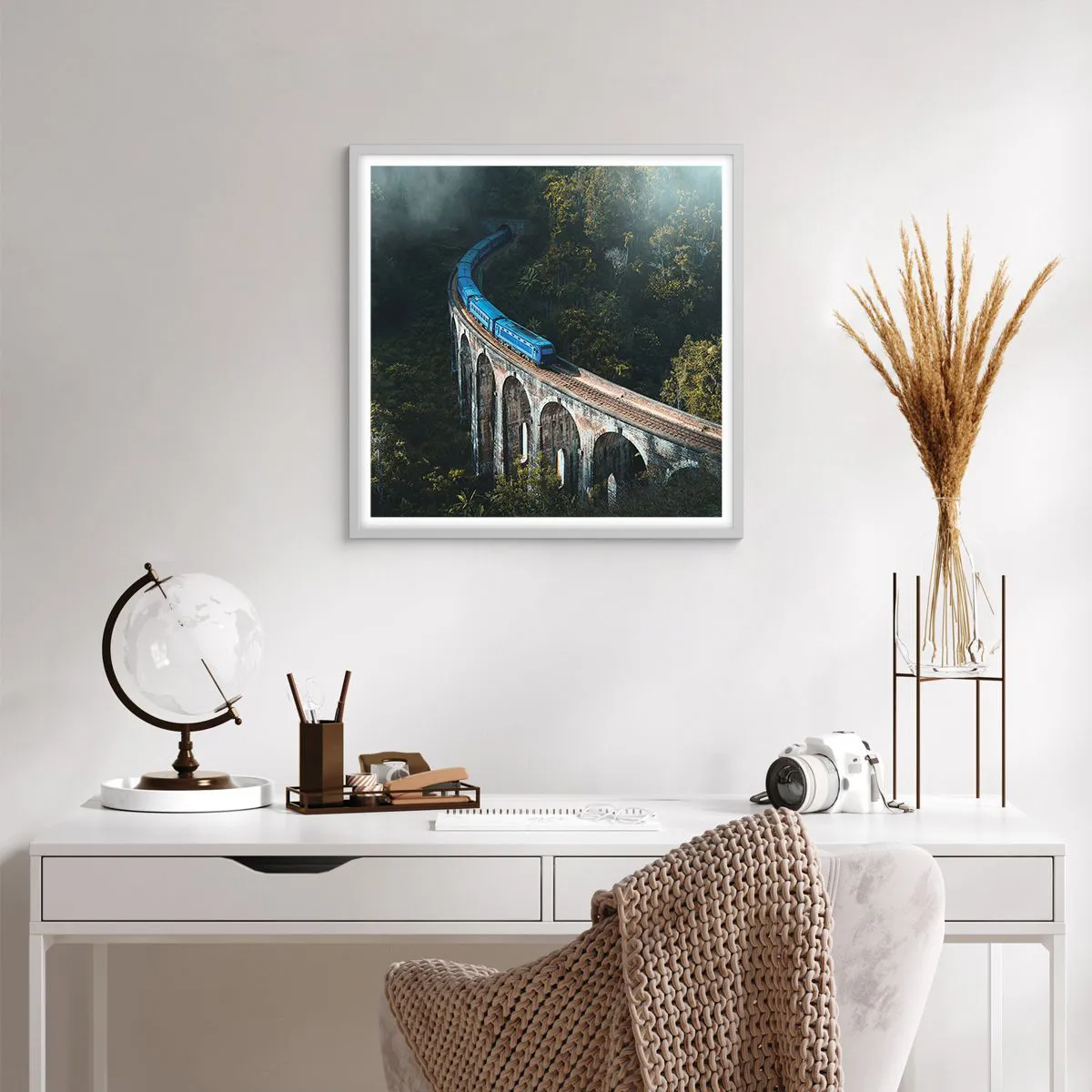 Pôster em moldura branca - Comboio para a natureza - 60x60 cm