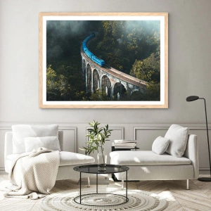 Pôster com moldura de carvalho claro - Comboio para a natureza - 100x70 cm