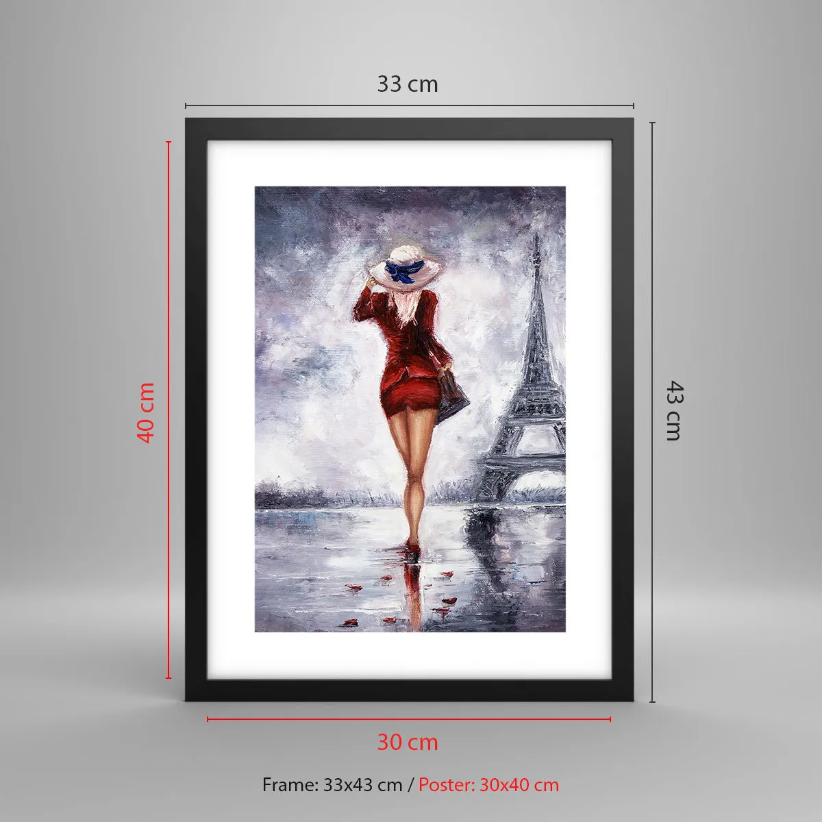 Pôster com moldura preta - Símbolos parisienses - 30x40 cm